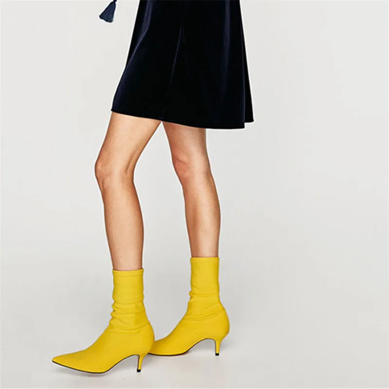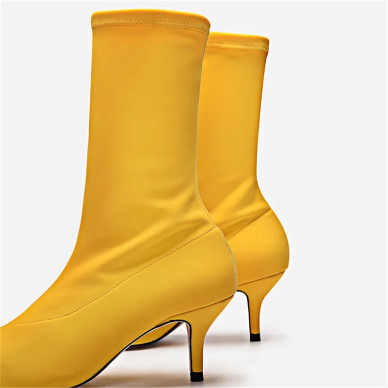 Comprar Prova Perfetto 2018 nuevas Botas de calcetín para mujer Botas altas elásticas puntiagudas de tacón alto Botas de tobillo para mujer Online Baratos