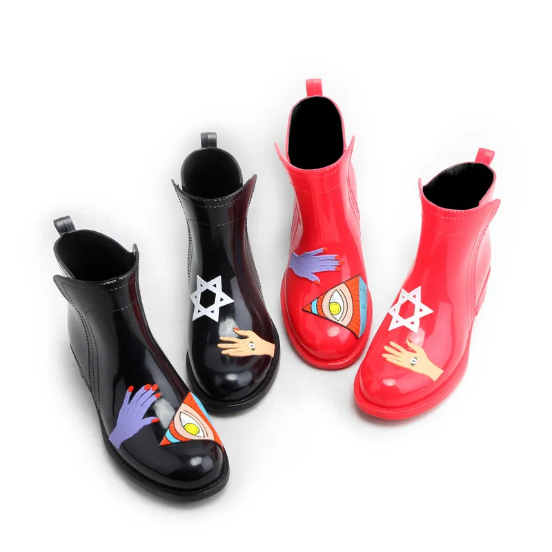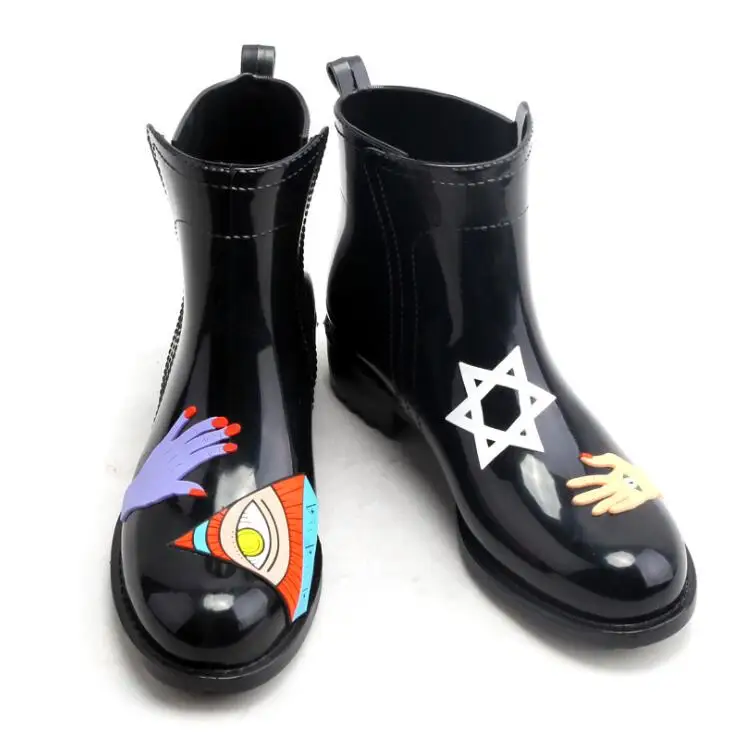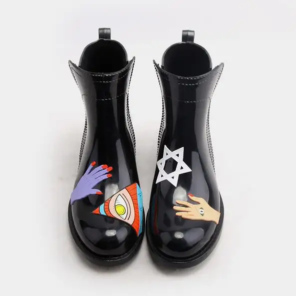 . Comprar Rouroliu caliente Graffiti de tobillo Botas de lluvia de las mujeres de tacón plano Botas de lluvia impermeable zapatos de agua zapatos mujer botas TR199 Online Baratos.