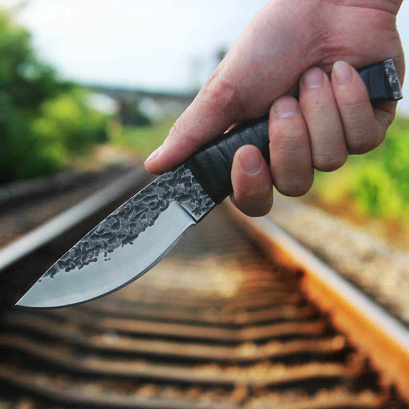 Comprar 5 cromo de acero forjado de alta dureza cuchillo recto portátil al aire libre Camping caza cuchillos con Funda de cuero herramientas de supervivencia Online Baratos.