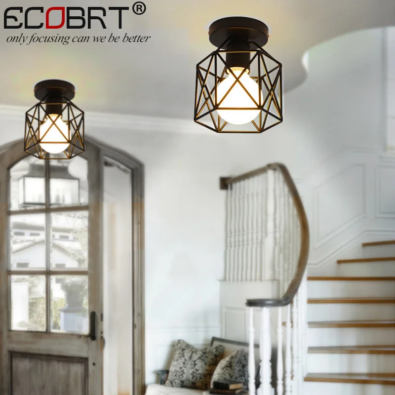 . Comprar ECOBRT nórdico negro creativo loft lámparas de techo con E27 hembra de hierro restaurante balcón estudio corredor sala de iluminación interior Online Baratos.