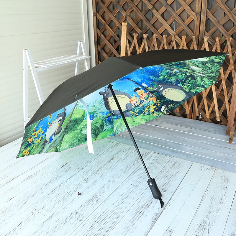 Comprar Ghibli Totoro Paraguas inverso automático lluvia sol mujeres Paraguas inverso a prueba de viento para coche Paraguas Totoro Parapluie Mujer Online Baratos.