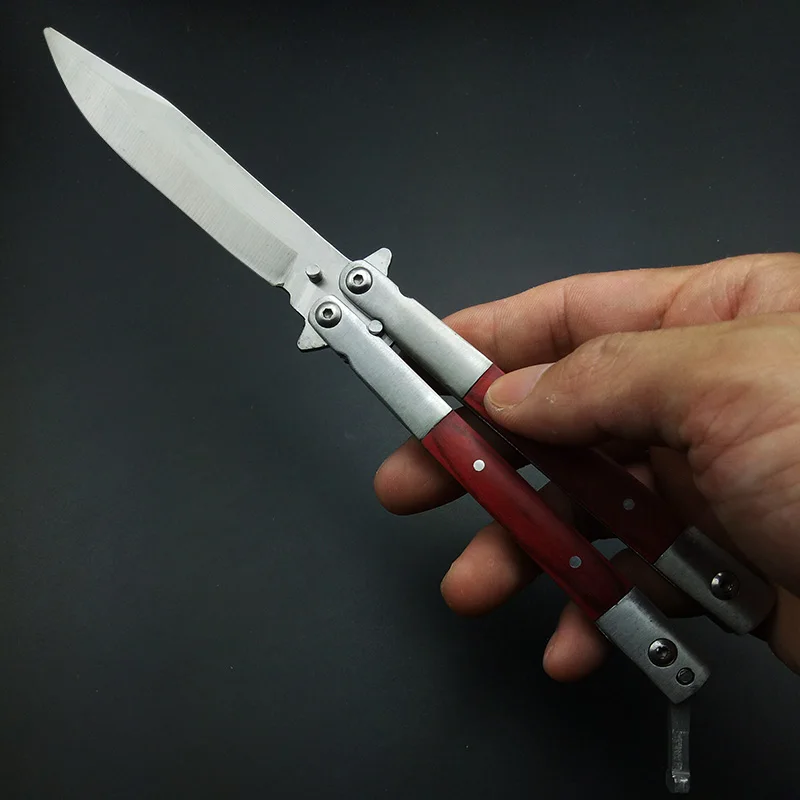 Comprar Herramientas de entrenamiento de mariposa sin borde sin cuchillo de práctica táctico afilado mango de madera rojo y negro con cubierta de vaina cada día Online Baratos.
