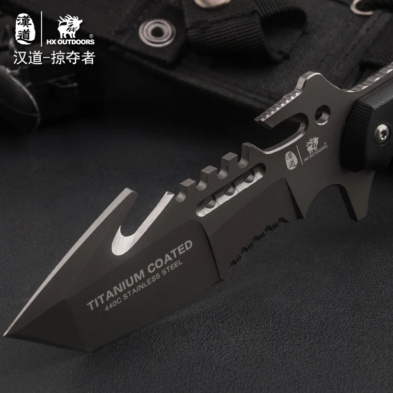Comprar HX OUTDOORS Predator supervivencia cuchillo que acampa, 440C caza supervivencia cuchillo táctico rescate cuchillos de caza con la envoltura, g10 + acero Online Baratos