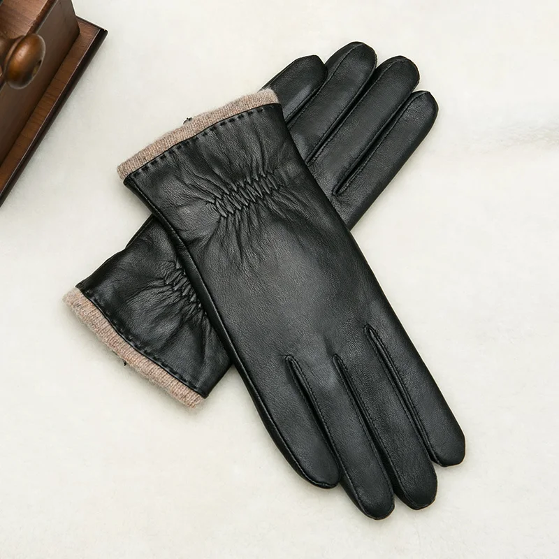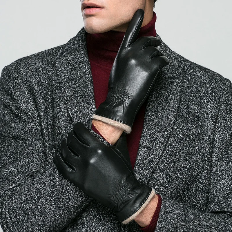 Comprar Klss marca de cuero genuino hombres guantes invierno cálido espesar Cashmere Liner alta calidad cabra guante cómodo Casual J01 Online Baratos.