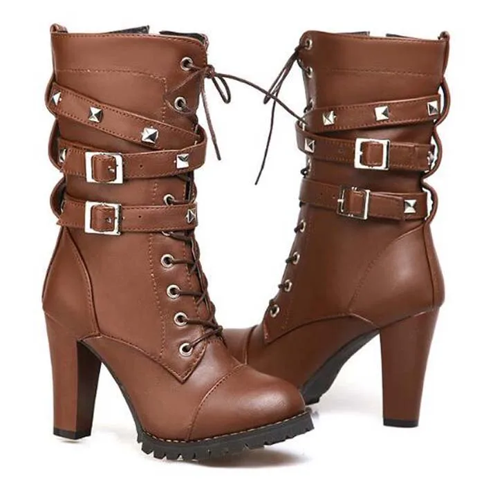 Comprar Nueva moda mujer botas de tacón alto remaches de zapatos casuales zapatos de mujer tamaño 40 41 42 aa0108 Online Baratos.