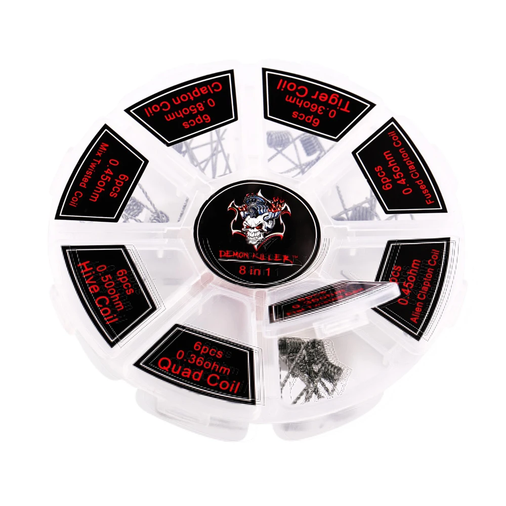 Comprar Original 48 unids piezas demonio Killer 8 en 1 Kit de bobina con Hive Quad Tiger Clapton mezcla Twisted Flat Twisted Fused Alien Coil e cig Core Online Baratos
