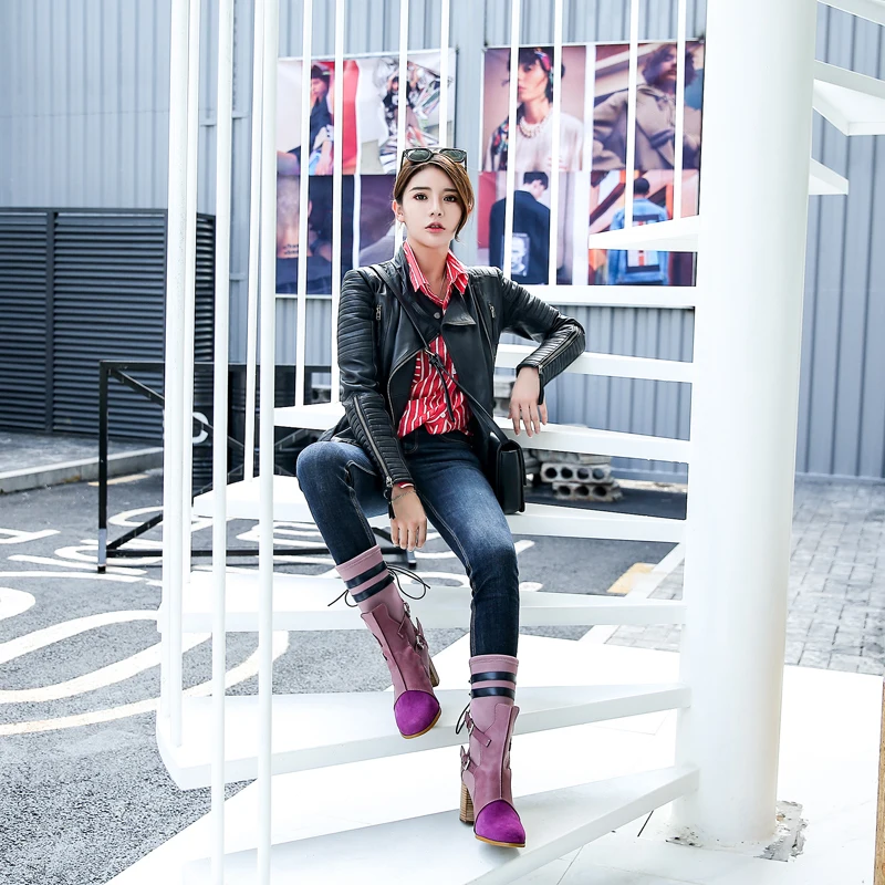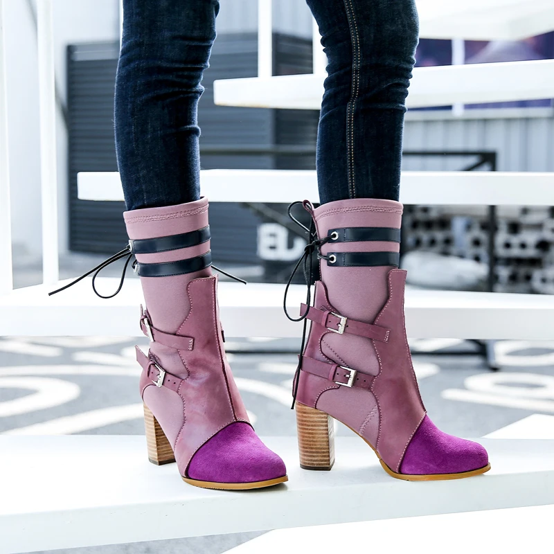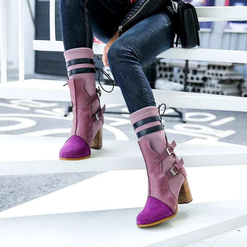 Comprar Prova Perfetto de Color mixto de las mujeres Botas de tejido elástico de corte Slim Botas Martin Botas mujer tacón alto grueso zapatos de mujer zapatos Botas mujer Online Baratos