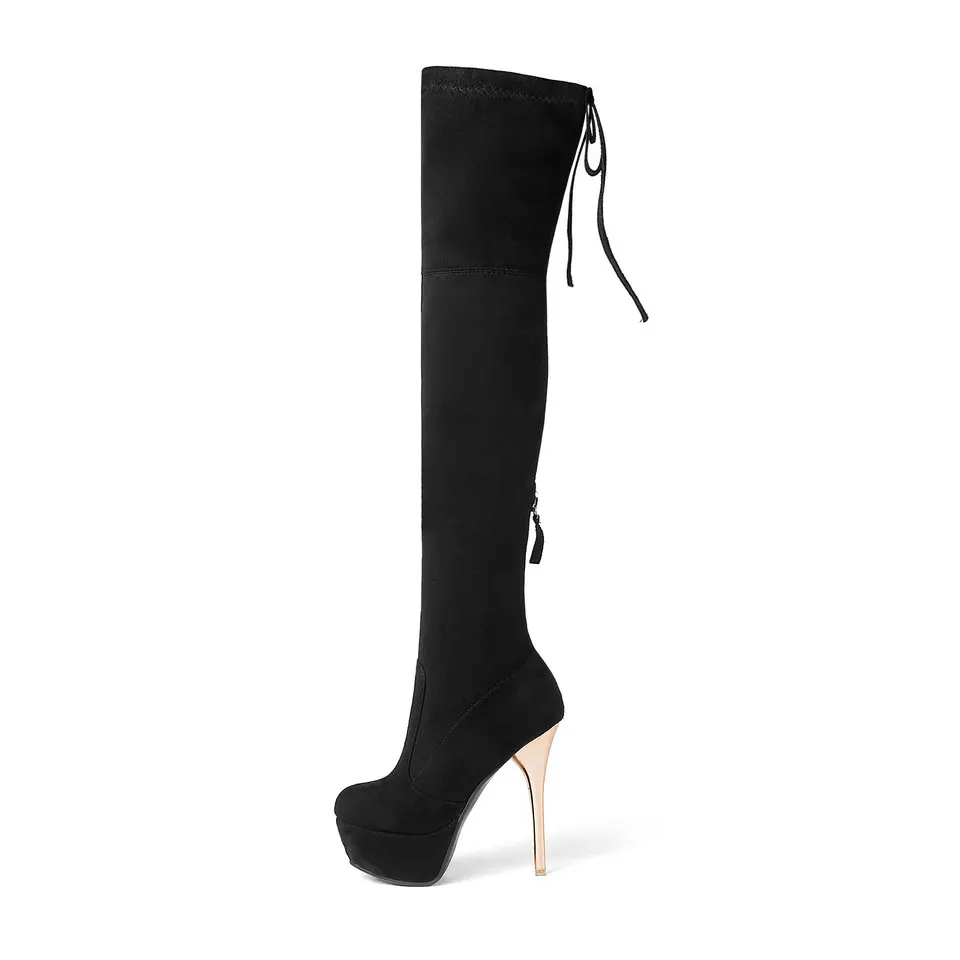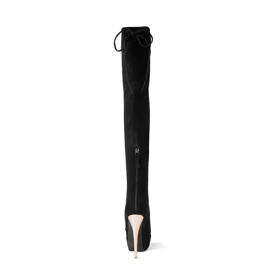 . Comprar VINLLE 2019 mujeres sobre la rodilla botas talón Delgado señaló encaje moda mujer zapatos PU cuero Mujer tamaño 34 43 Online Baratos.
