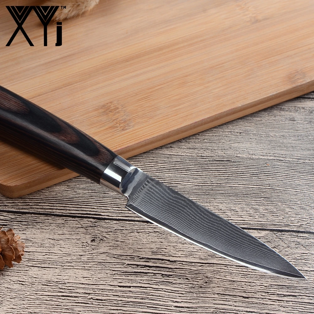 . Comprar XYj juego de cuchillo de cocina 3,5 pulgadas de acero de Damasco para pelar Kinfe VG10 nueva llegada 2018 Damasco patrón frutas herramientas de la cocina Accesorios Online Baratos.