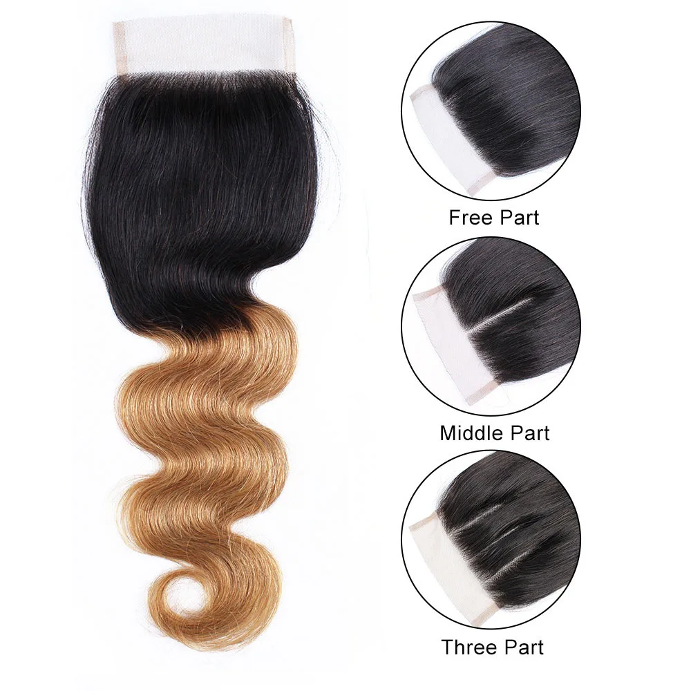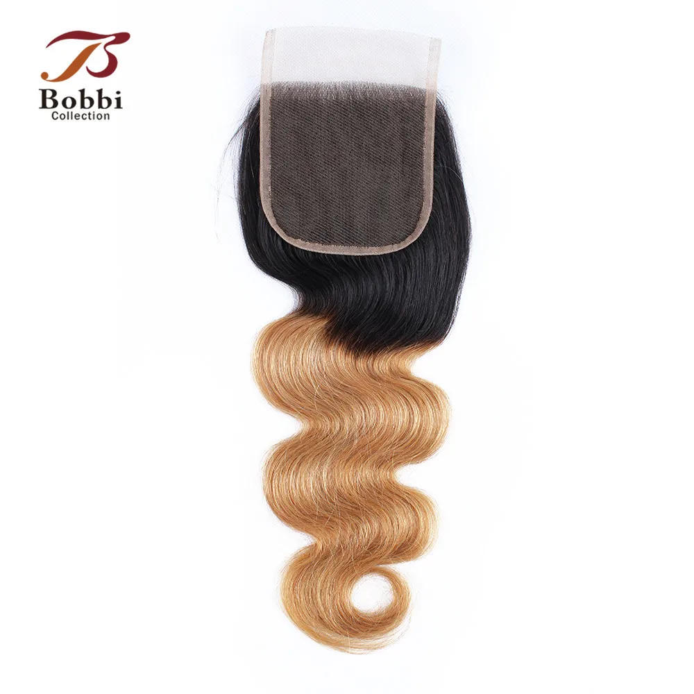Comprar Bobbi colección T 1B 30 encaje cierre Ombre Marrón castaño brasileño de la onda del cuerpo atado a mano 4*4 Cierre de encaje cabello humano Remy 8 20 pulgadas Online Baratos.