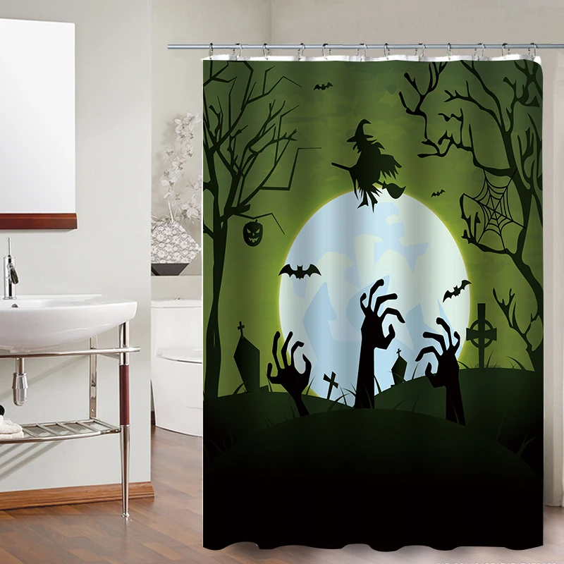 . Comprar FOKUSENT Cortina de ducha de Halloween Horror Noche de las maderas cementerio bruja murciélagos Luna cortinas de tela de poliéster Online Baratos.