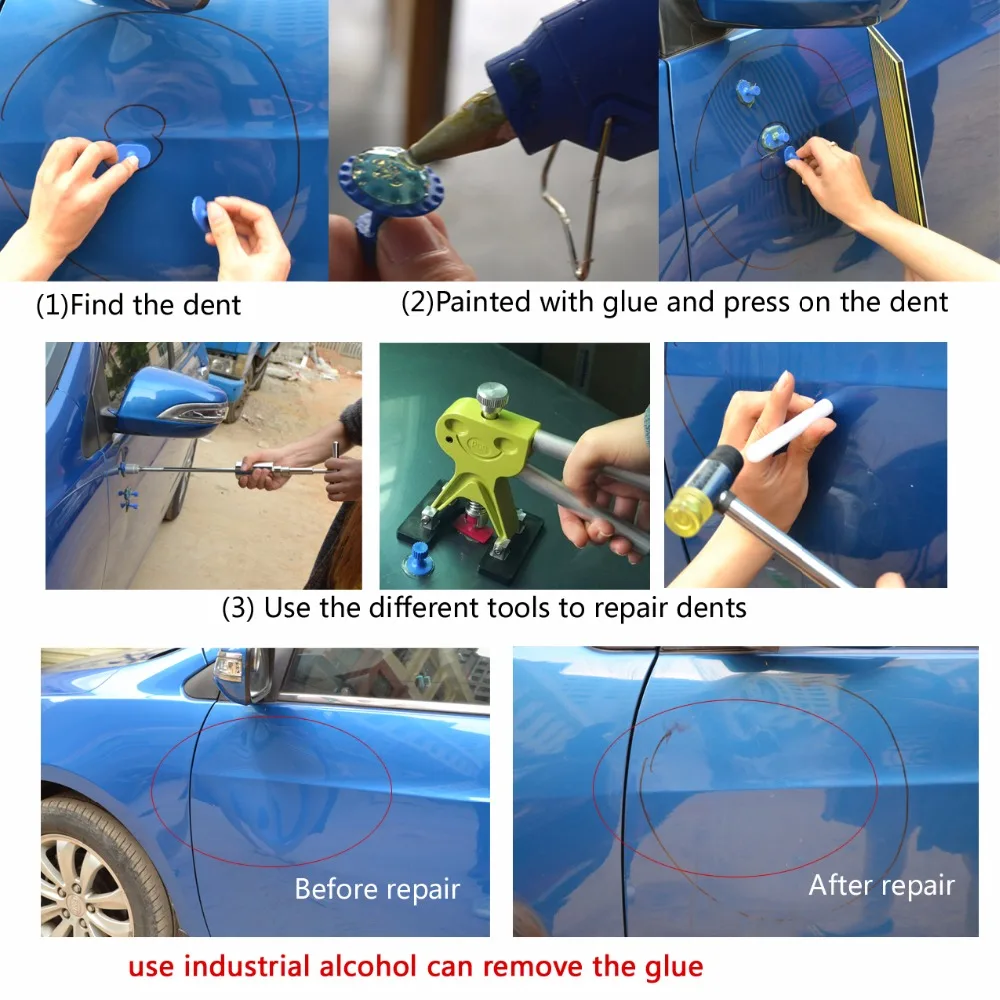 Comprar La República Democrática Popular alquiler de auto Dent reparación herramienta martillo deslizante, pistola de pegamento Extractor de abolladura del cuerpo de auto reparación herramientas Dent herramienta de eliminación de kit Online Baratos