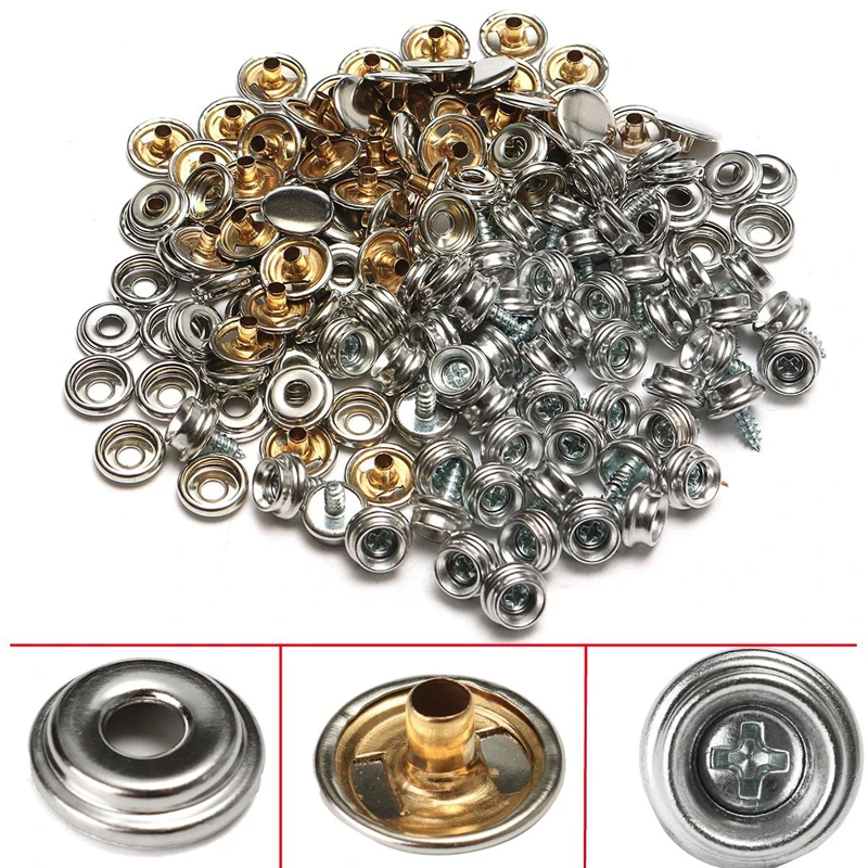 Comprar Mayitr 50 Unidades Snap Fastener tornillo Kit Botón de acero inoxidable enchufes con herramienta para cubierta del barco cubierta de cuero en casa herramienta Online Baratos