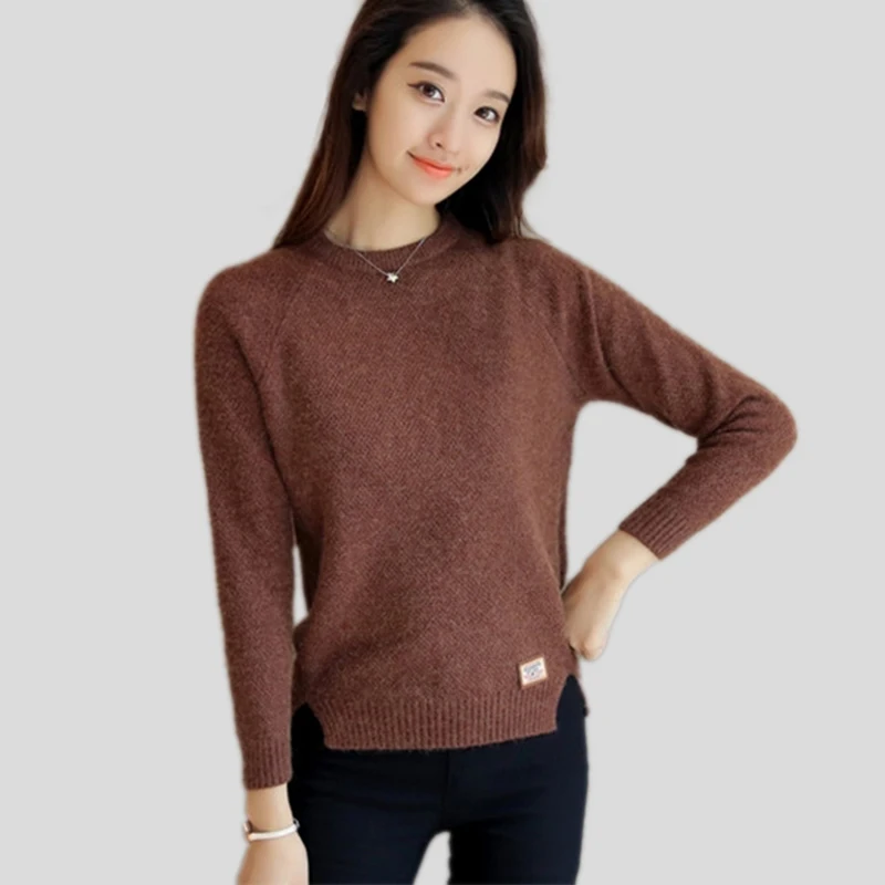 Comprar Otoño Invierno mujeres de color sólido suelto cuello redondo pullover punto 2018 versión coreana de la nueva casual split tenedor suéteres Online Baratos