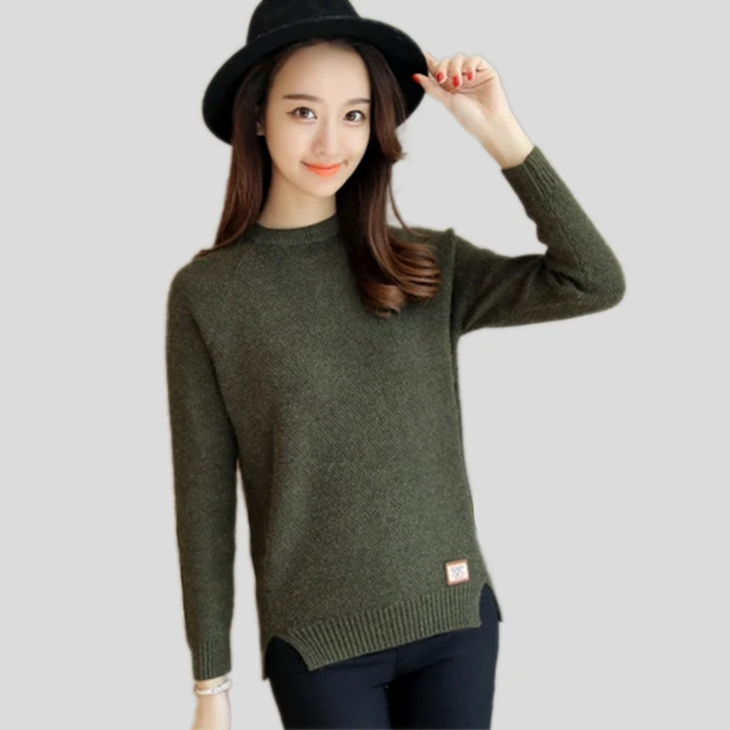 Comprar Otoño Invierno mujeres de color sólido suelto cuello redondo pullover punto 2018 versión coreana de la nueva casual split tenedor suéteres Online Baratos.