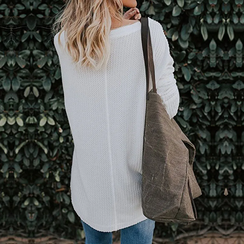 Comprar Para Mujer suelta camisas Henley botón abajo manga larga alto bajo frente Tie Tops v cuello camisetas Online Baratos.