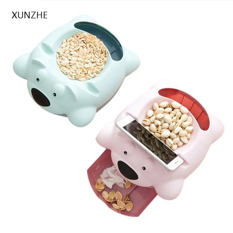 Comprar XUNZHE perezoso plástico doble capa seca fruta envases aperitivos almacenamiento titular organizador con soporte de teléfono móvil Online Baratos