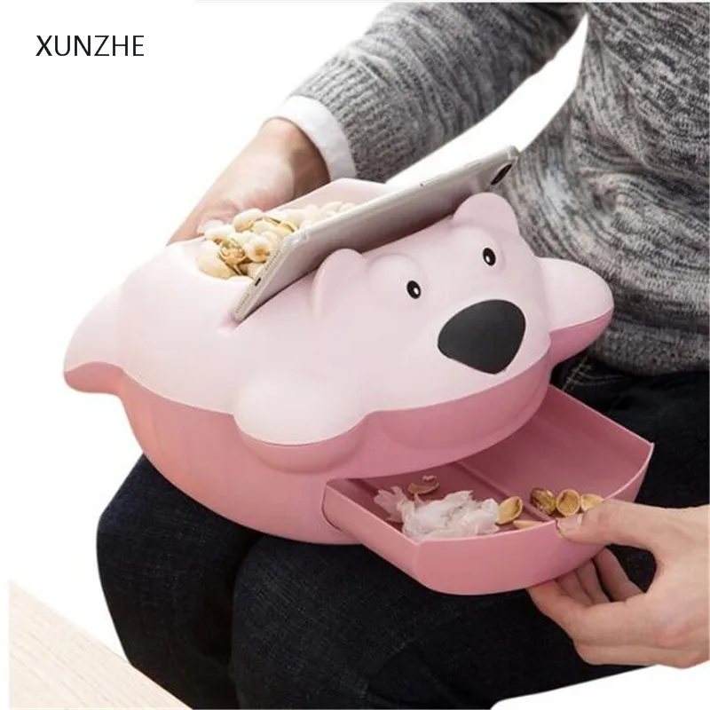 Comprar XUNZHE perezoso plástico doble capa seca fruta envases aperitivos almacenamiento titular organizador con soporte de teléfono móvil Online Baratos.