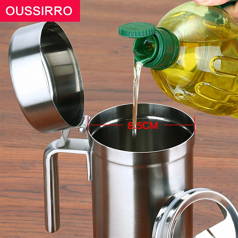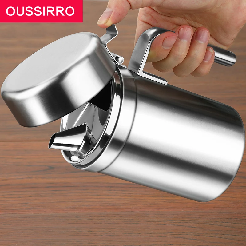 Comprar 1 piezas acero inoxidable 304 engrasador visual fuga de aceite comestible aceite vinagre botella de salsa de soja botella de especias Online Baratos