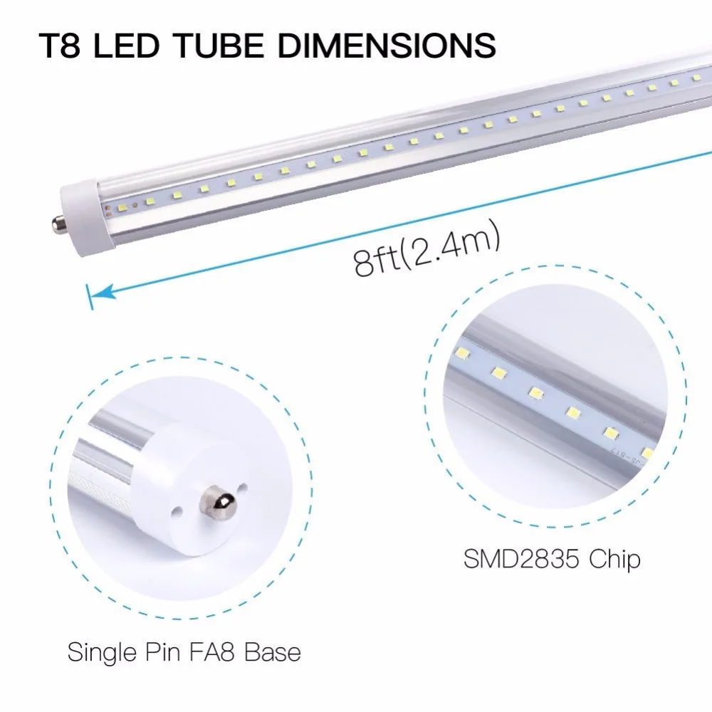 . Comprar 8ft llevó la luz del tubo 96 \"45 vatios T8 FA8 solo perno llevó bombillas con claro y helado cubierta 6500 K blanco frío sustituir bombilla fluorescente Online Baratos.