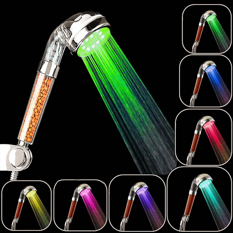 Comprar Agua la cabeza de ducha del LED anión filtro de agua guardar y Control de temperatura colorido iónico negativo ducha filtración 7 cambio de Color Online Baratos.