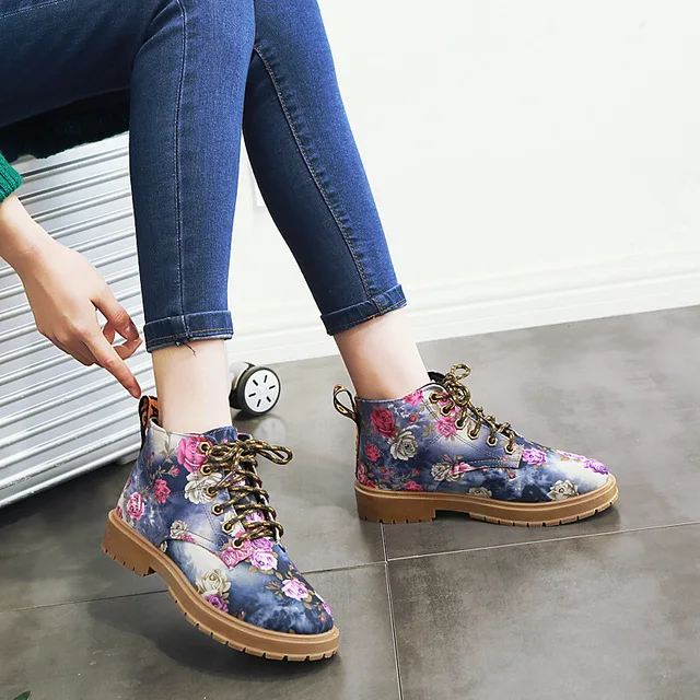 . Comprar Aleafalling clásica mujeres botas de encaje bordado de flores lindo Simple zapatos de cuero suave niña para el otoño de primavera BootWBT72 Online Baratos.