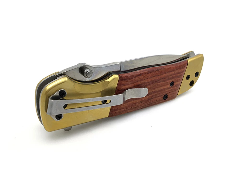 Comprar BGT DA69 cuchillo plegable táctico caza al aire libre Camping bolsillo cuchillos 5Cr13 hoja de madera + mango de acero supervivencia EDC herramientas Multi Online Baratos