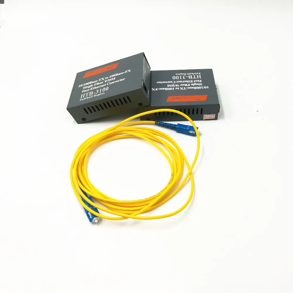 Comprar Htb 3100ab fibra óptica convertidor de medios transceptor de fibra simple modo único 25 km SC 10 m 100 con 3 Metro SC SC puente de fibra Online Baratos