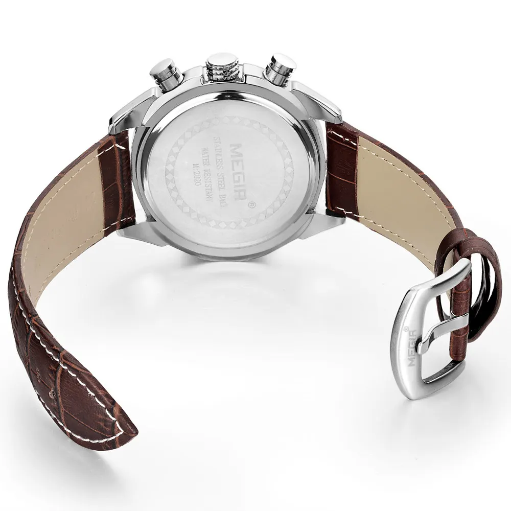 Comprar MEGIR genuino de cuarzo relojes masculinos relojes de Cuero Genuino de carreras de los hombres Estudiantes juego Correr Reloj Cronógrafo masculino manos resplandor Online Baratos.