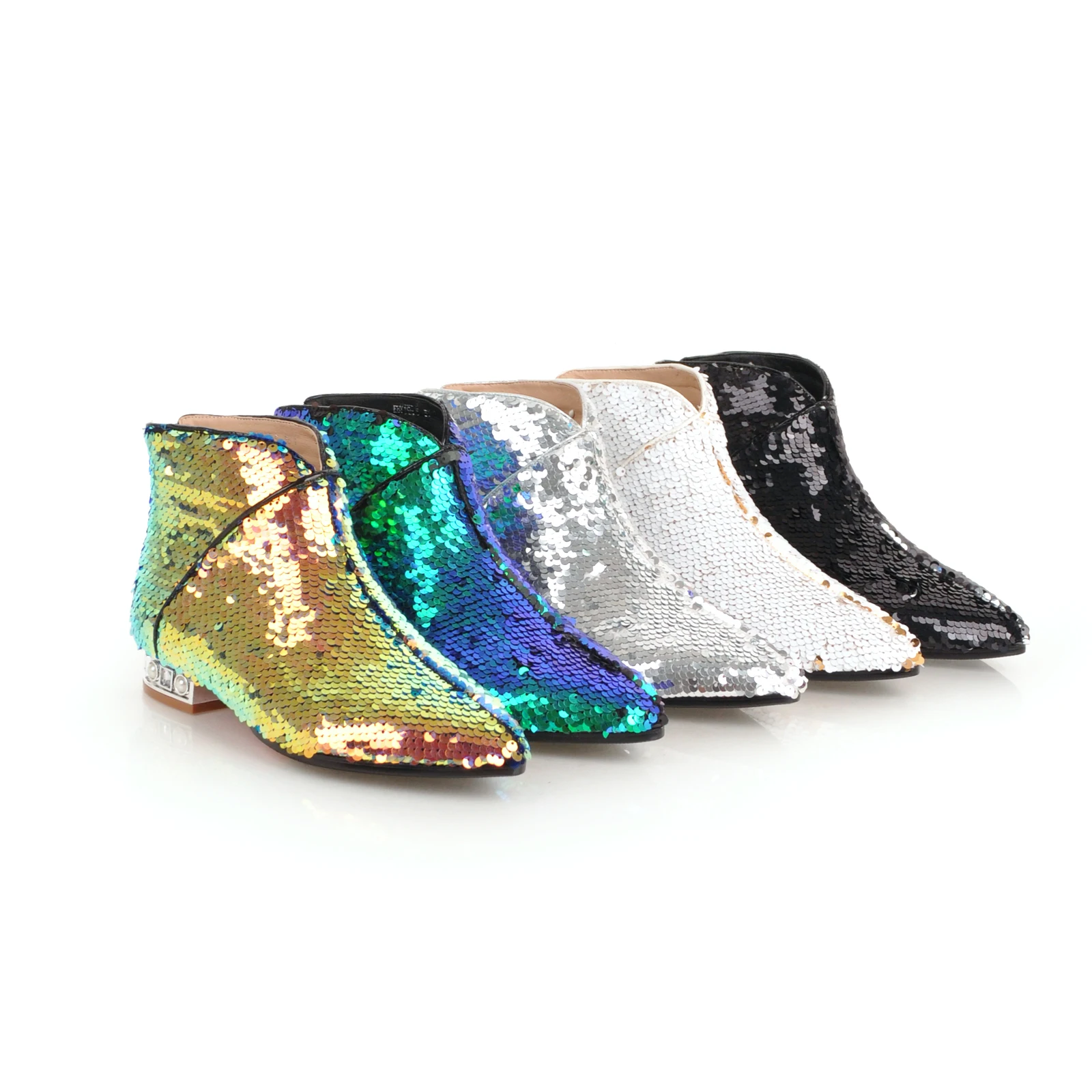 Comprar WETKISS invierno tobillo mujeres arranque Bling punta corta de cristal botas calzado de mujer de zapatos de tacón bajo de las mujeres 2018 Online Baratos