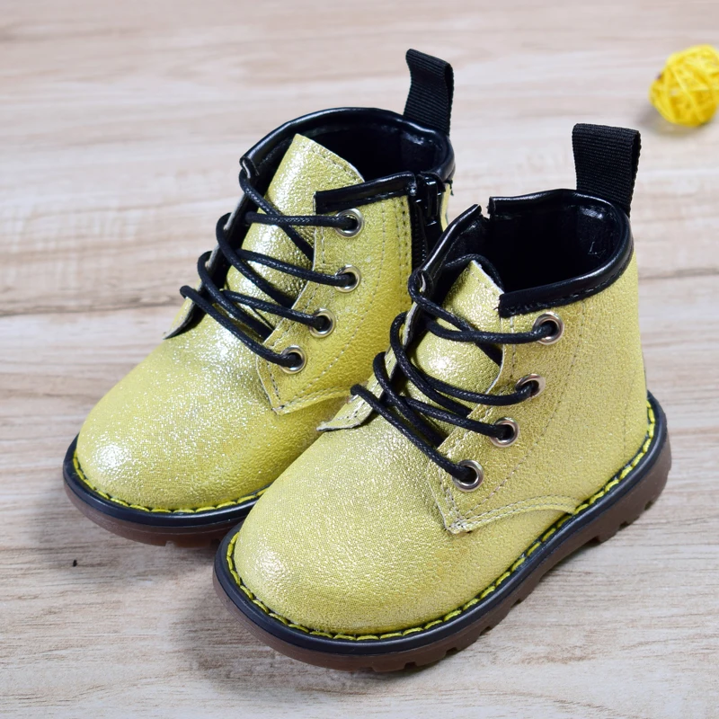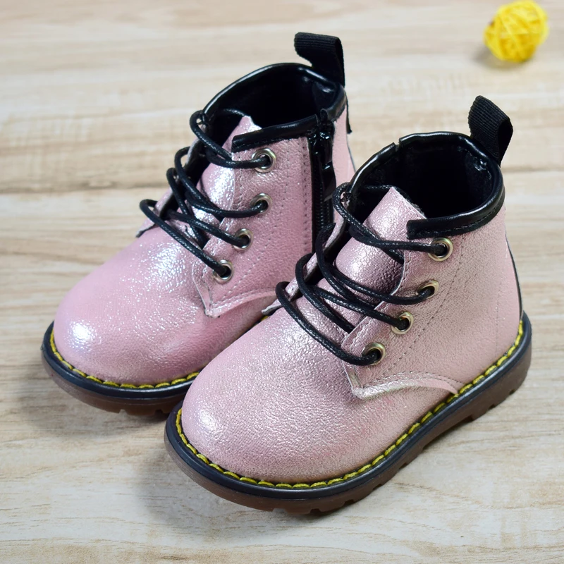 Comprar 2018 nuevo otoño niños botas de cuero niños niñas botas para los niños de encaje antideslizante impermeable de los niños de la moda botas de Online Baratos