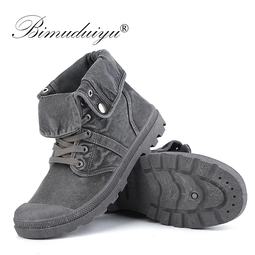Comprar BIMUDUIYU 2018 Zapatos de lona Zapatos de hombres Martin botas alta tobillo botas para Hombre otoño primavera botas Casual Zapatos Hombre Online Baratos
