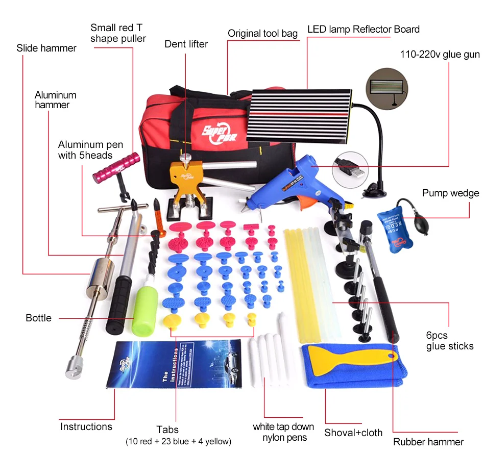 Comprar Kit de herramientas PDR de abolladura sin reparación Dent eliminación herramientas de auto reparación Extractor de abolladura lámpara LED Reflector de conjunto de herramientas de mano Online Baratos.