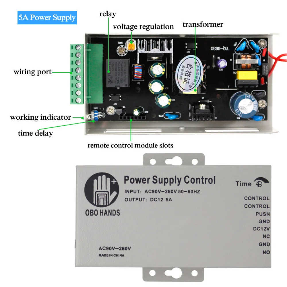 Comprar OBO manos 12VDC Control de acceso interruptor de fuente de alimentación 3A 5A retardo de tiempo ajustable AC90V 260V entrada NO NC salida para 2 cerraduras eléctricas Online Baratos.