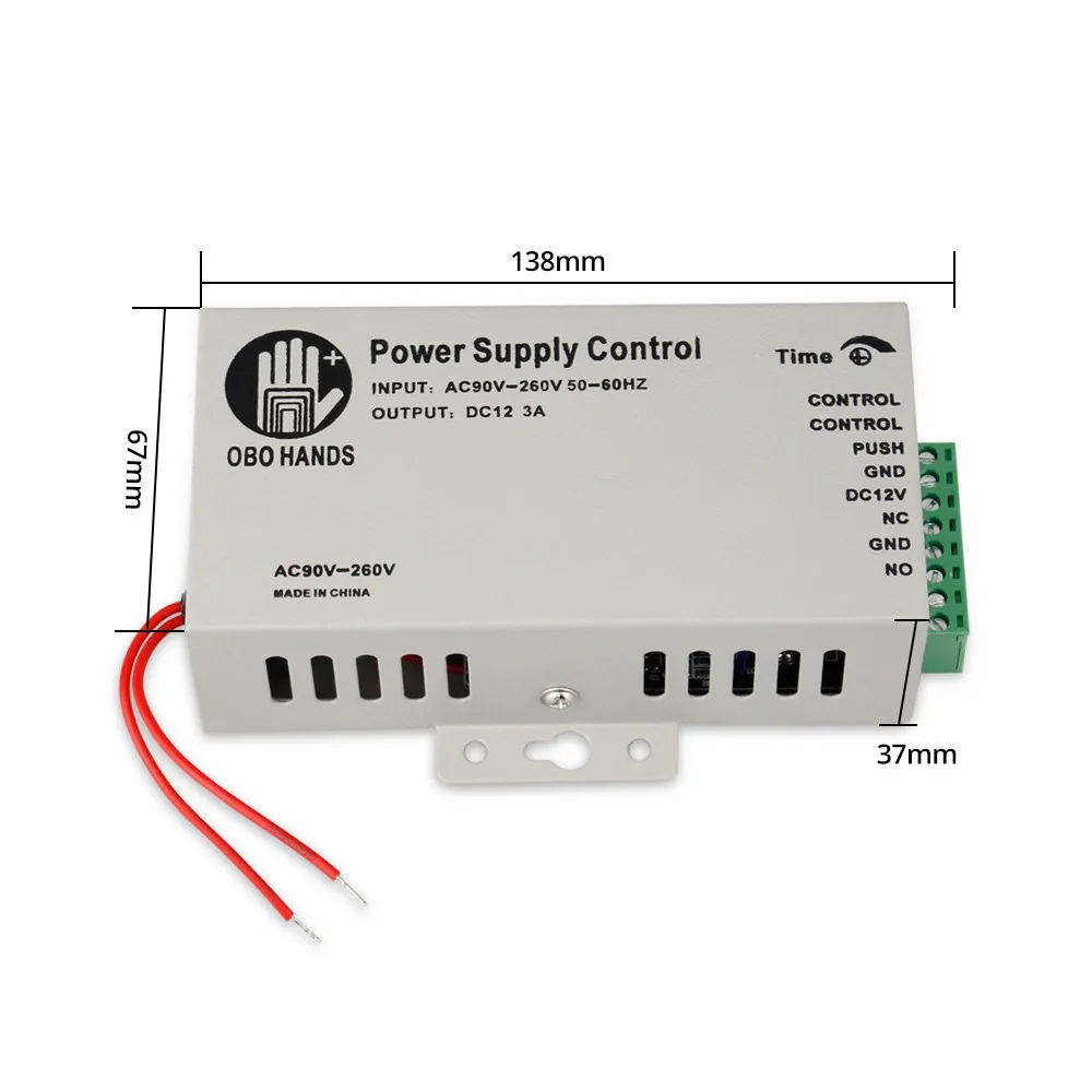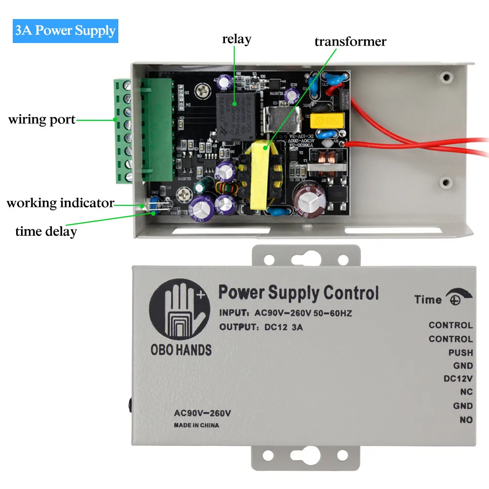 Comprar OBO manos 12VDC Control de acceso interruptor de fuente de alimentación 3A 5A retardo de tiempo ajustable AC90V 260V entrada NO NC salida para 2 cerraduras eléctricas Online Baratos