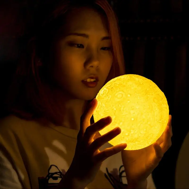 Comprar Recargable 3D impresión lámpara Luna 2 cambio de Color Interruptor táctil dormitorio estantería noche luz inicio decoración regalo creativo Online Baratos.