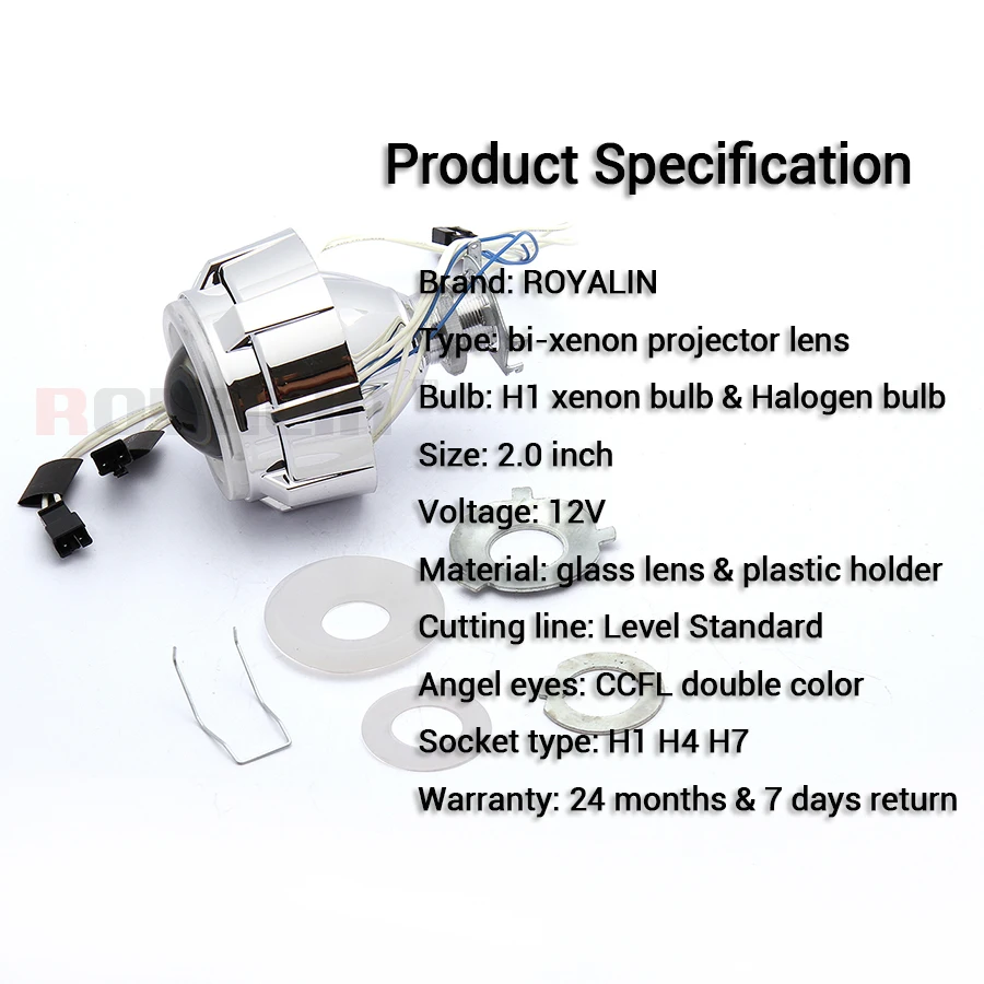 . Comprar ROYALIN 2,0 motocicleta faro lente H1 bombilla CCFL doble ojos de Ángel anillos de Halo Xenón halógena proyector para Auto Hola Lo haz H4 H7 Online Baratos.
