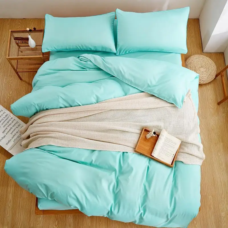 Comprar Solsticio textil nuevo producto sólido Color 4 piezas ropa de cama conjunto de microfibra de ropa de cama azul marino ropa de cama funda nórdica de la cama hoja de Online Baratos