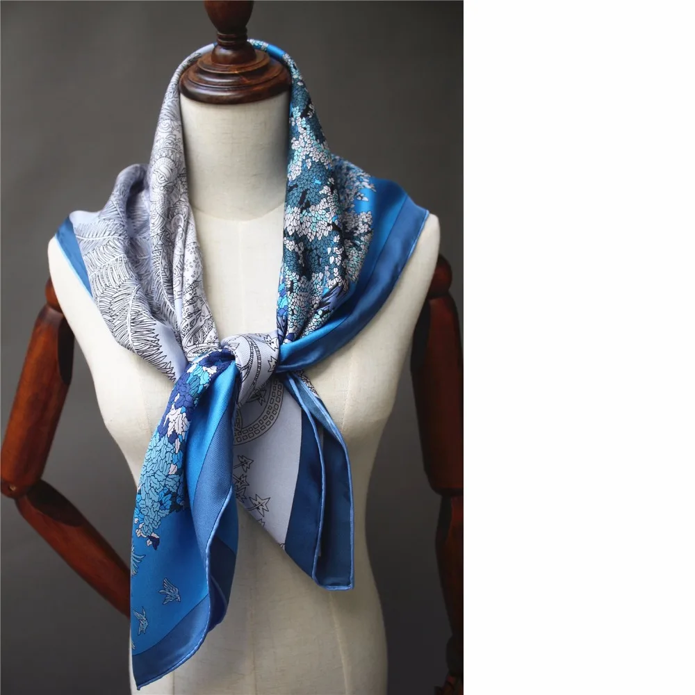 Comprar De moda cuadrado grande seda pañuelo seda chal 90 100% Sarga de seda bufandas secreto Foulard 88x88 cm de estilo mano bordes Online Baratos.