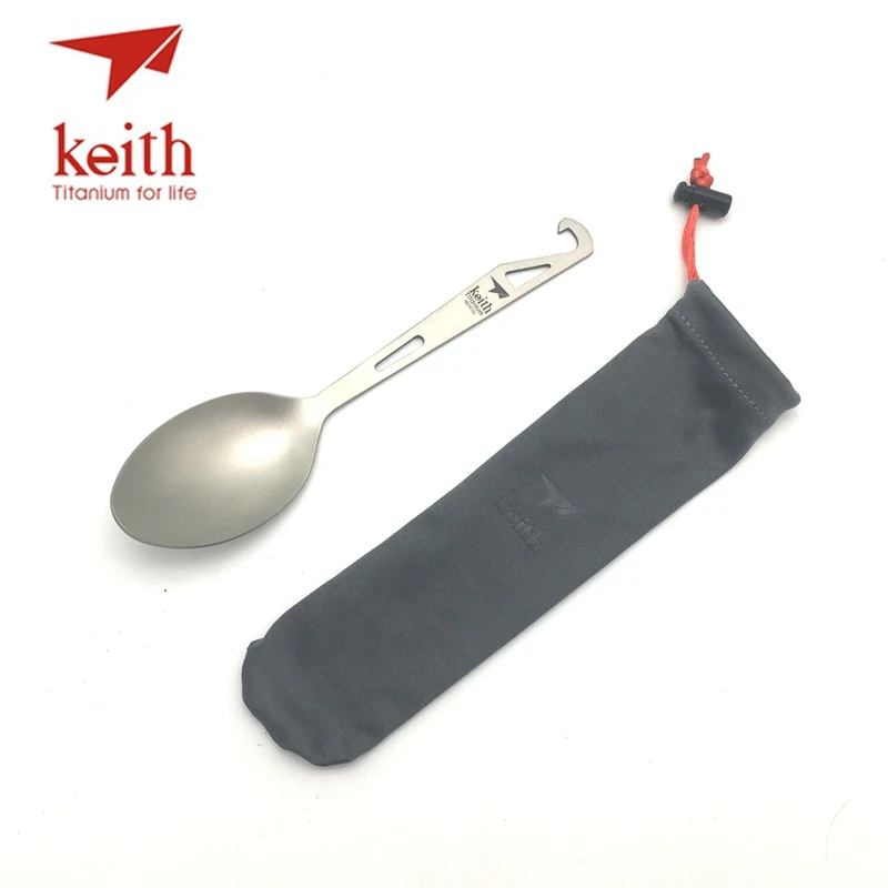 Comprar Keith Titanium grande cuchara con tenedor Consejo abrebotellas mango largo viaje Camping Tablewares Picnic cuchara conveniente 29G Ti5317 Online Baratos