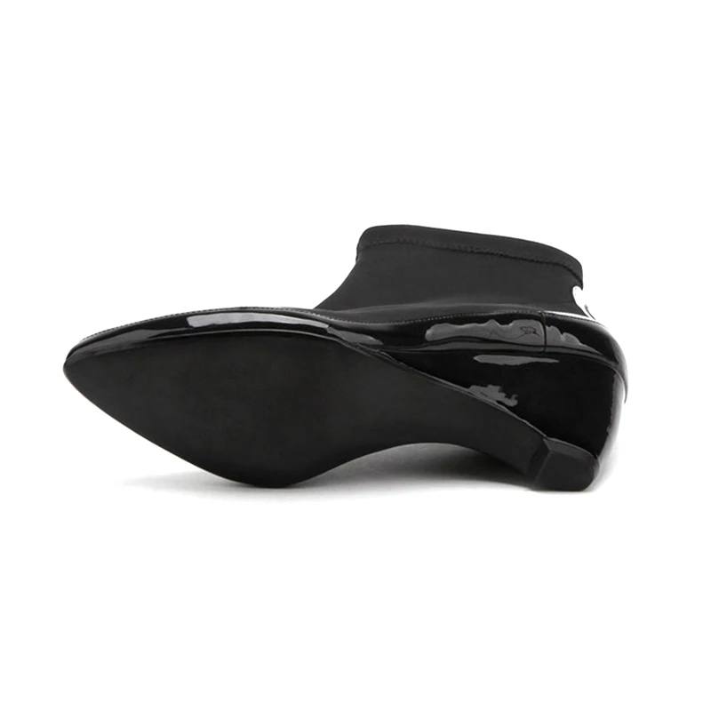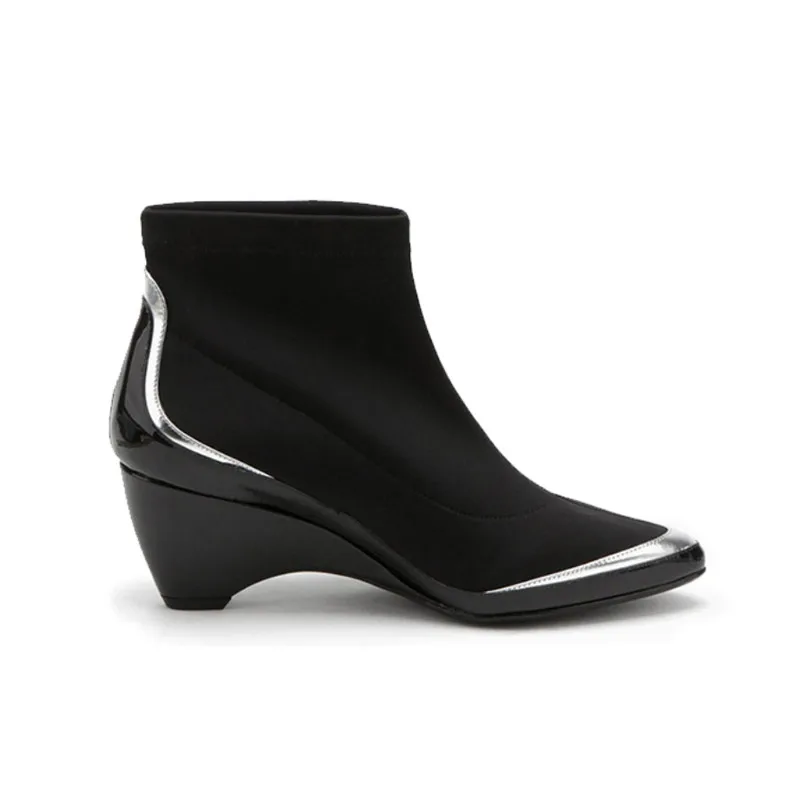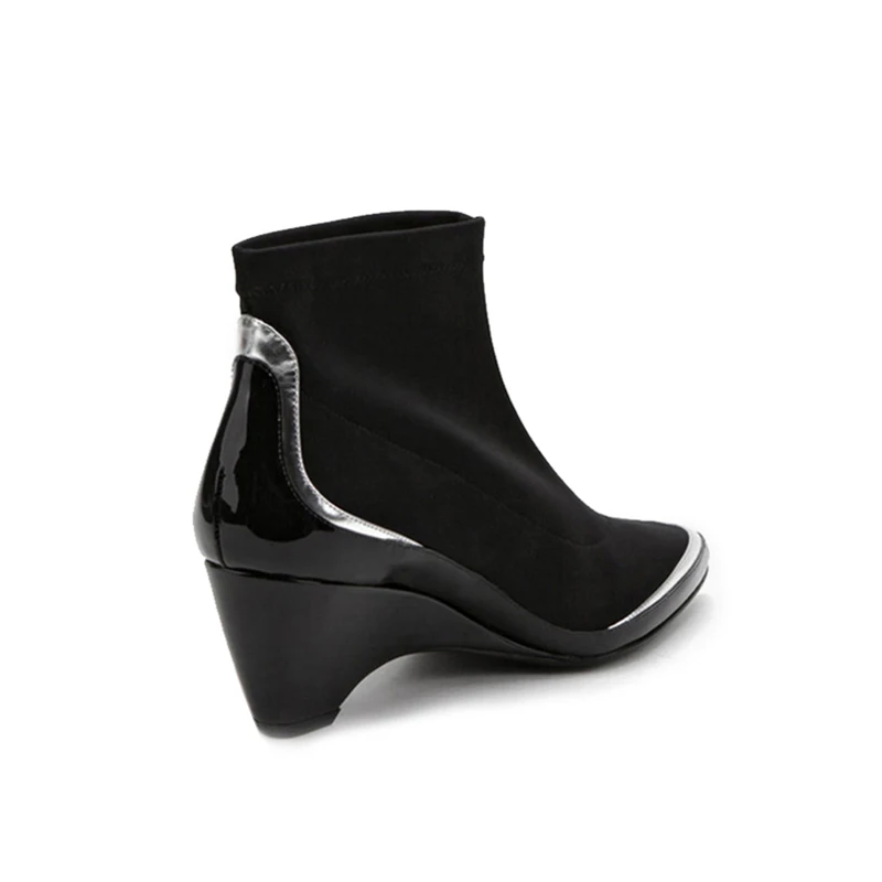 Comprar Las mujeres calcetines Botas tejido elástico del dedo del pie puntiagudo Slip On cuñas Botas de tobillo de las mujeres, negro Stiletto Botas Mujer HL22 MUYISEXI Online Baratos