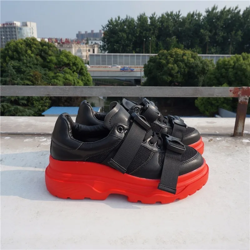 . Comprar RASMEUP genuino de malla de cuero de la Plataforma de las mujeres zapatillas de deporte 2018 de las mujeres de la moda blanco negro papá zapatos mujer Casual grueso calzado Online Baratos.
