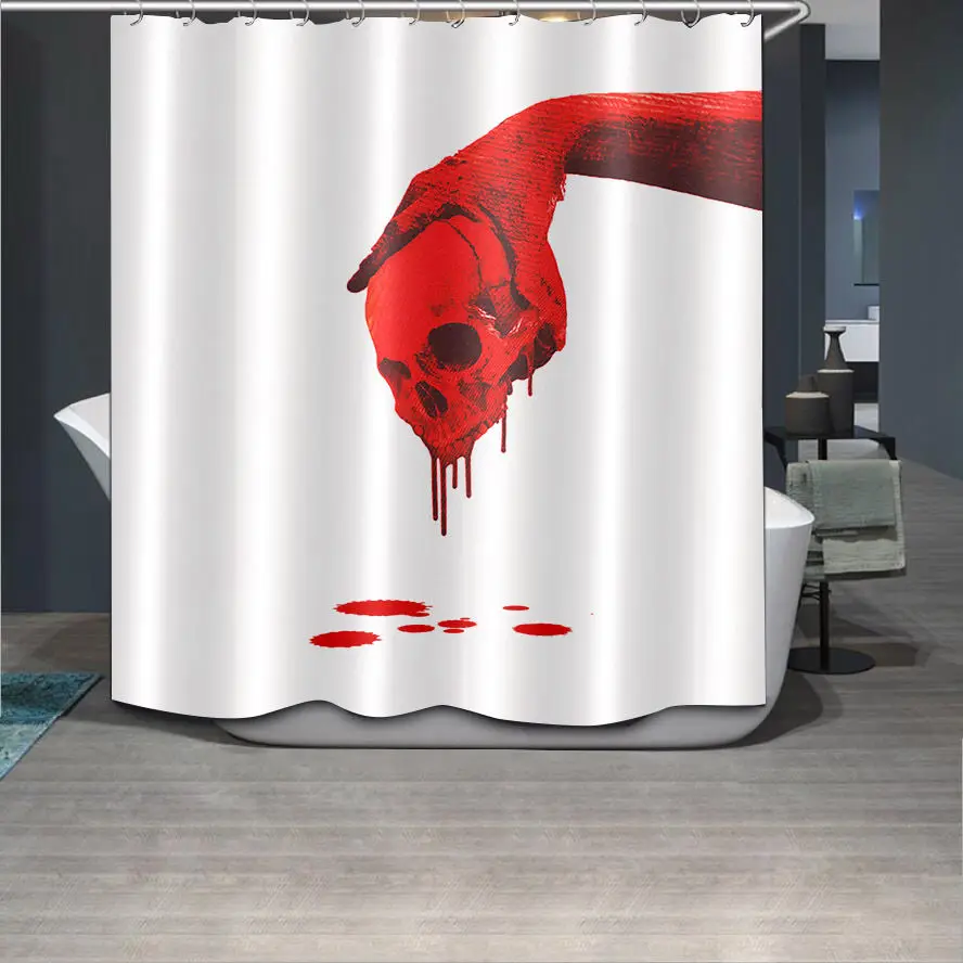 Comprar Scary Blood cráneo impermeable Telas baño ducha cortina 12 Ganchos Online Baratos
