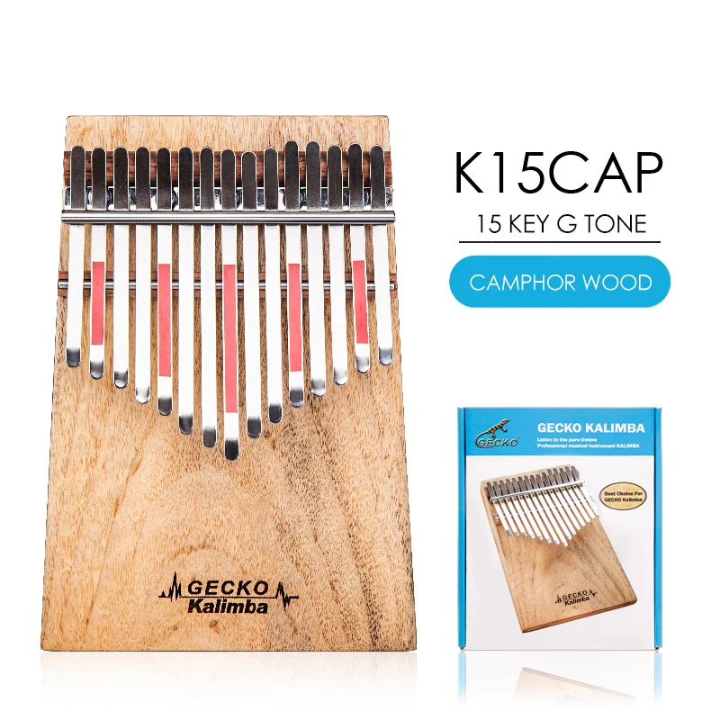 Comprar Tono G GECKO 15 clave de alcanfor de Kalimba con instrucción y melodía martillo portátil Thumb Piano Mbira Sanza K15CAP Online Baratos