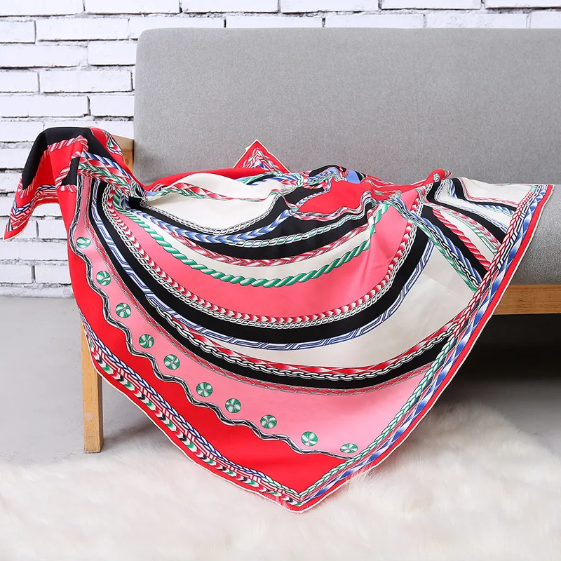 Comprar 100% sarga seda azul bufanda mujeres caballo cabeza Hijab moda estampado chales y abrigos 16mm Foulard Neckerchief 2018 mano enrollada 90x90 cm Online Baratos