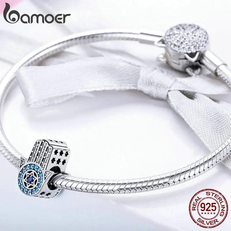 . Comprar BAMOER 100% plata esterlina 925 moda elemento suerte Fatima mano encanto cabida los granos del encanto pulseras y brazaletes DIY joyería SCC721 Online Baratos.