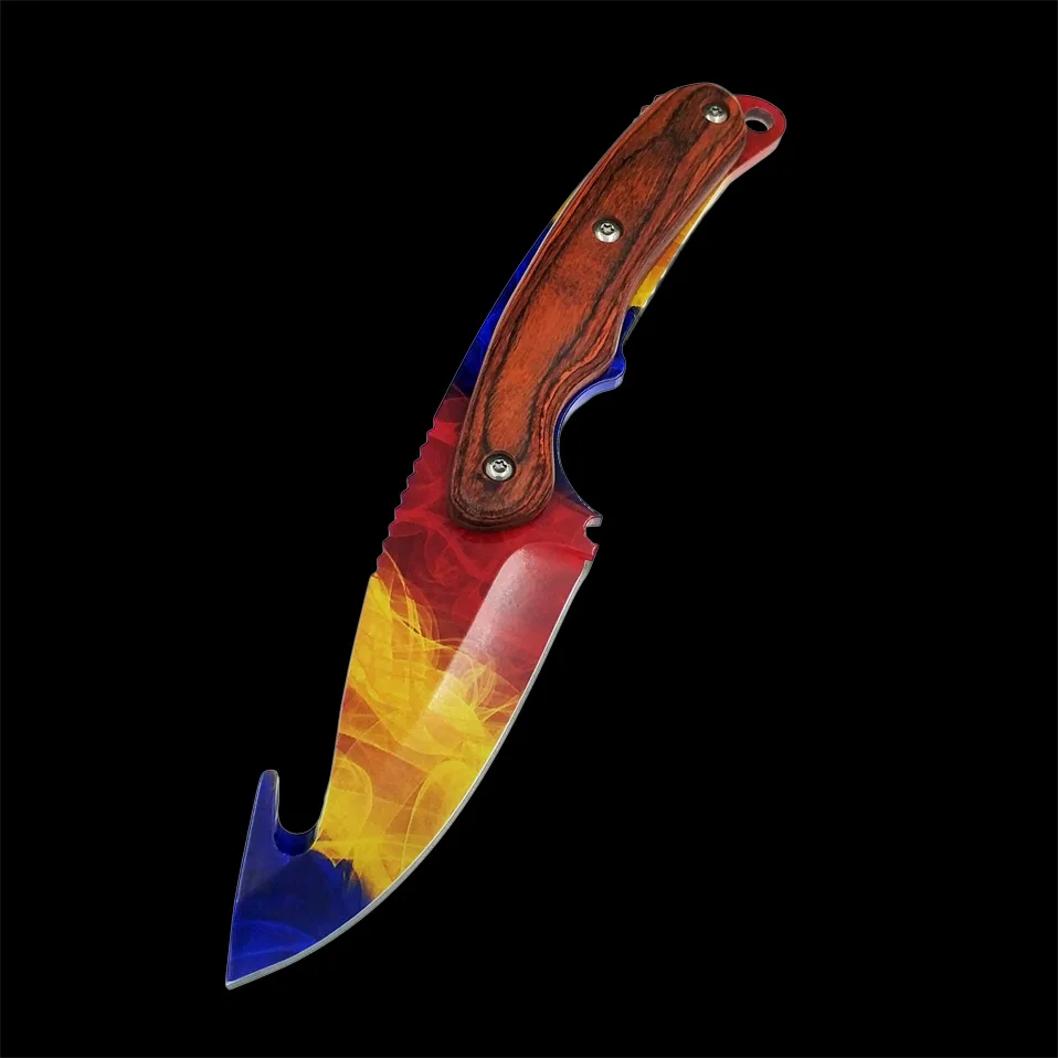 Comprar Cuchillo de dientes de Tigre Real CS GO Gut Knifes contraataque táctico cuchillo de caza recto vaina de Camping supervivencia cuchillo de color Online Baratos