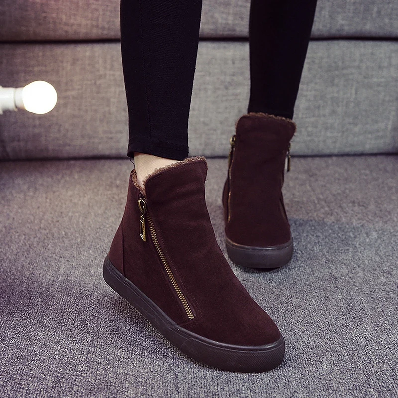 Comprar Mujeres Botas de invierno de La felpa caliente tobillo nieve Botas con cremalleras señoras plataforma zapatos mujer confort grueso vendido negro Botas mujer Online Baratos.