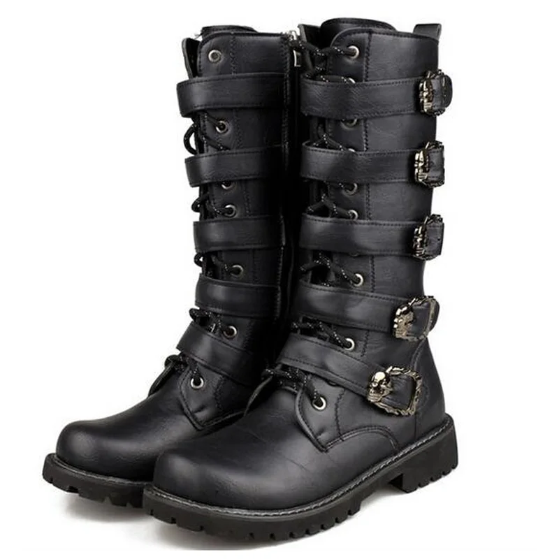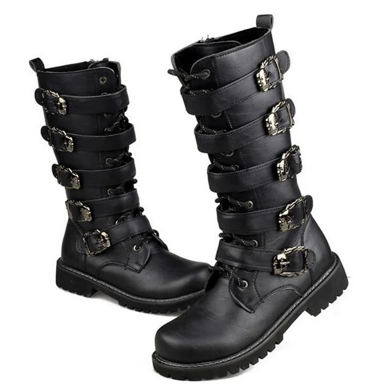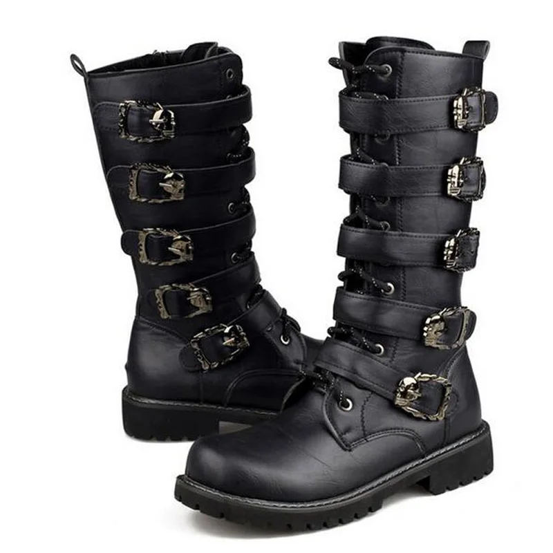 . Comprar Tangnest hombres contra hebilla de Metal botas casuales de cuero de vaca militar botas media pantorrilla otoño zapatos Punk tamaño de los hombres 37 ~ 45 XMX854 Online Baratos.