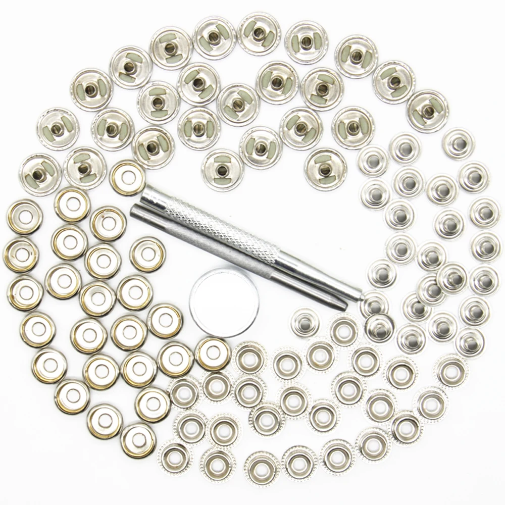 Comprar 15mm 25 piezas botones de botón a presión de Metal con sujetador herramienta de instalación para niños y adultos y cuero Online Baratos.